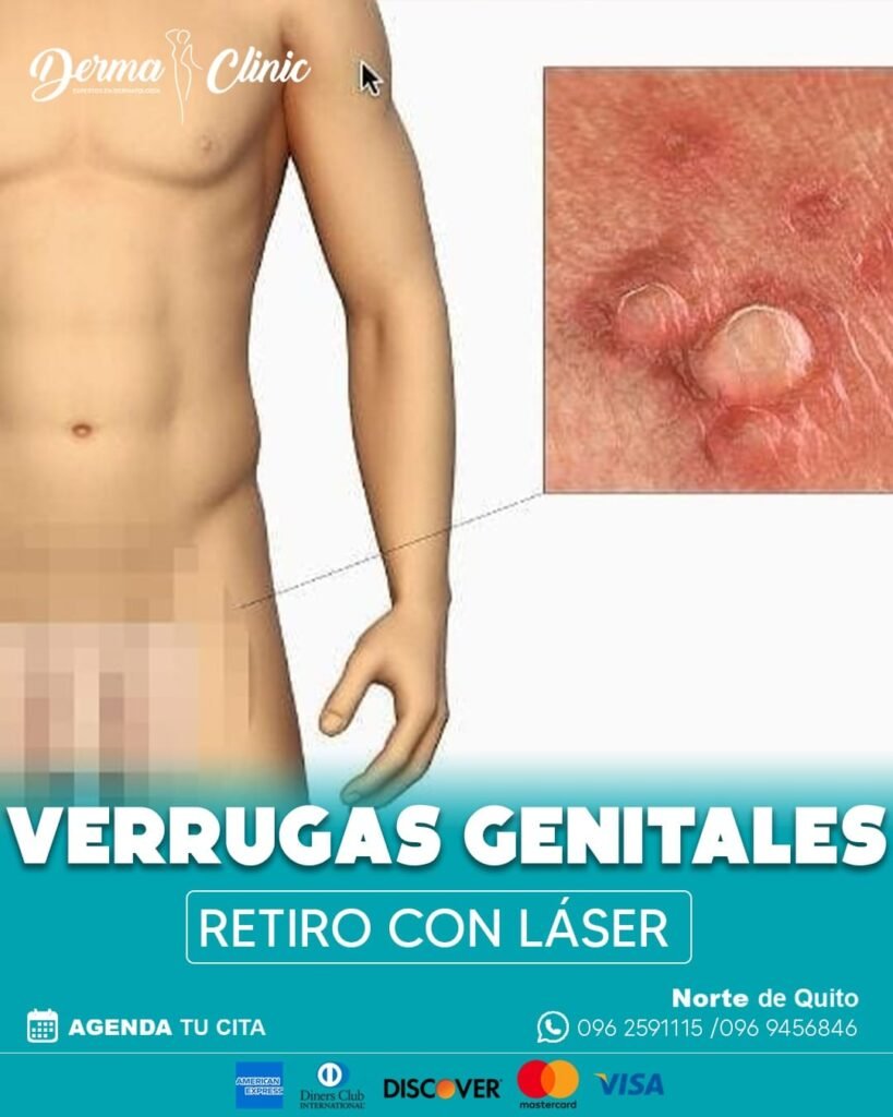 Procedimiento dermatológico para eliminar verrugas causadas por el Virus del Papiloma Humano (VPH) en la zona genital, mediante técnicas seguras como crioterapia, láser o electrocauterio.