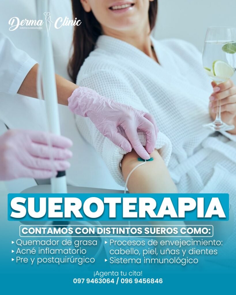 Aplicación intravenosa de sueros con vitaminas, minerales, antioxidantes y otros compuestos terapéuticos para mejorar el estado general de salud y bienestar.